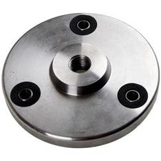 ADAPTER PLATE, FOR FRONT MOUNTED HYDRAULIC PUMP DRIVE. 5-1/4" DIA. WITH 3 BUSHINGS, MOUNTING HOLES 3.465" ON CENTER, 4" BOLT CIRCLE, 3/4" LEFT HAND THREADED CENTER HOLE. TRACTORS: MF35, MF150, MF65, MF135, MF150, MF235 ORCHARD, MF245 ORCHARD.